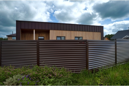 Забор Жалюзи — это секционное ограждение с необычным дизайном. Элементы выполнены из оцинкованной стали с полимерным покрытием.