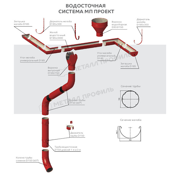 Угол желоба Металл Профиль ПРОЕКТ D185 Ral 7004